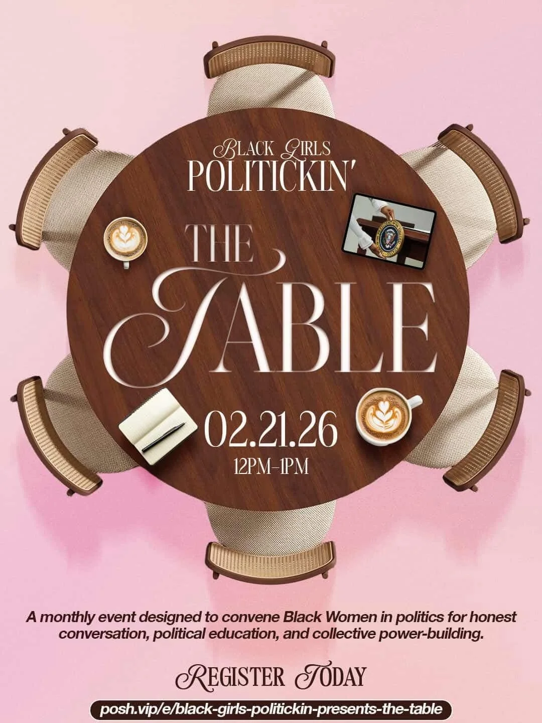 The Table is the signature monthly virtual series from Black Girls Politickin, created to convene Black women across politics, government, advocacy, and public service for intentional, intergenerational conversation.